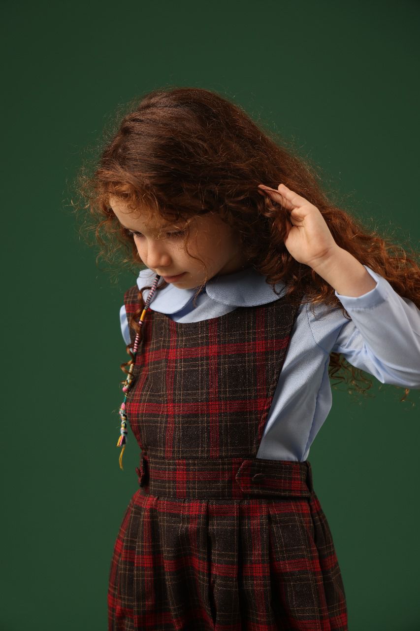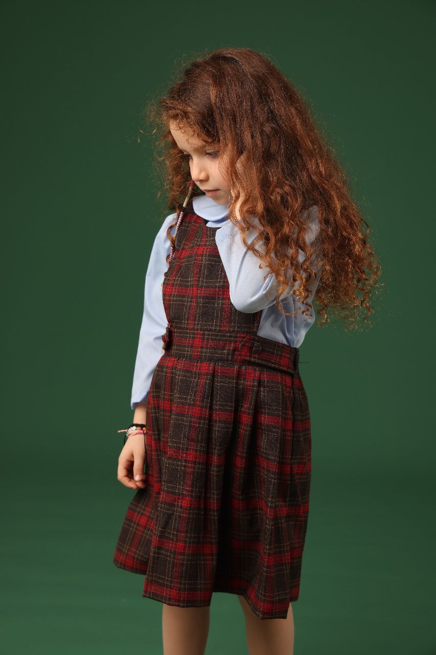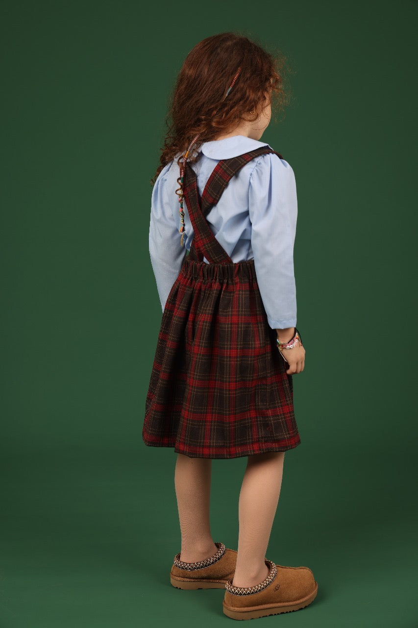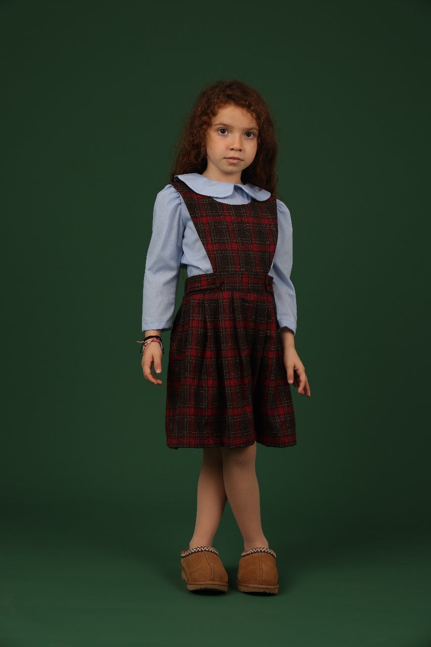 Capture the spirit of classic schoolhouse style with this lovely jumper. The beautiful wool-blend plaid fabric gives it a warm, textured look