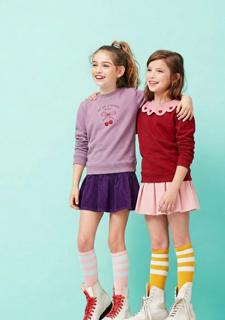 Crafted in a soft ribbed fabric, this flared skirt features a structured waistband with delicate button details for a polished touch. The rich purple shade adds elegance while keeping it playful